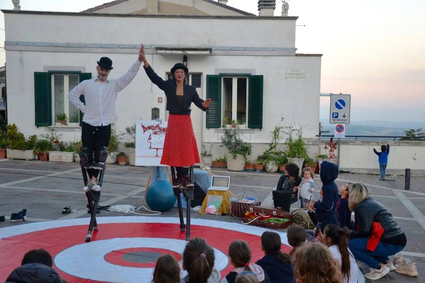 Spettacolo esperienziale interattivo per tutta la famiglia, teatro di narrazione con trampoli.